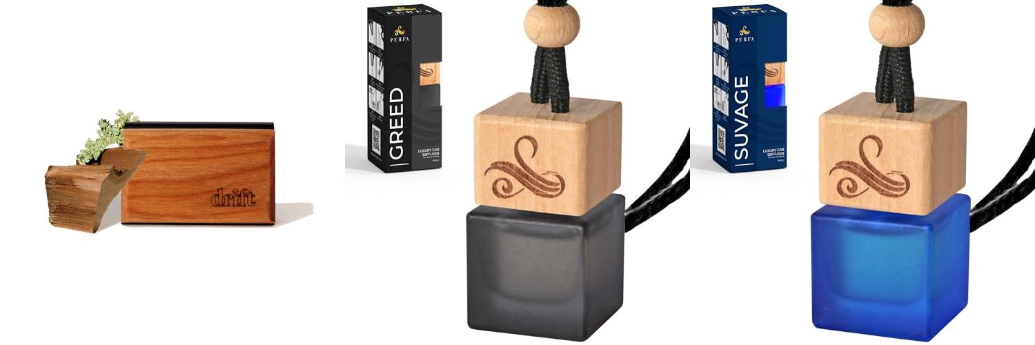 1. Drift Car Air Freshener – Wood Air Freshener – Car Odor Eliminator – Teak Scent Starter Kit