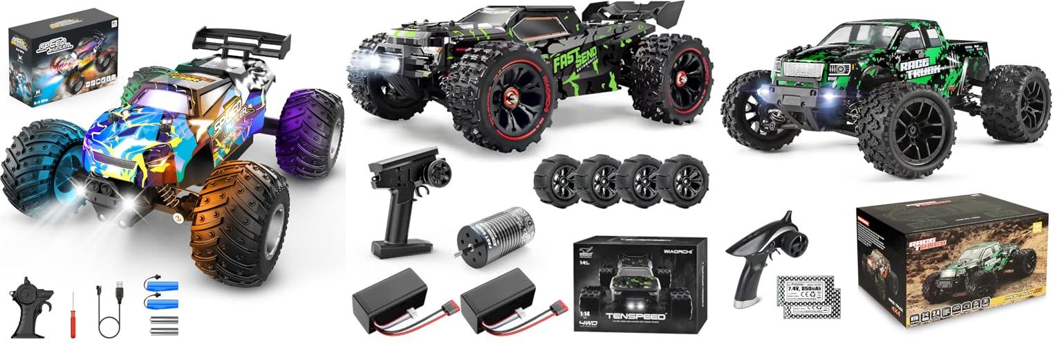 • Off-Road Adventures: For dirt tracks, grass, or rough terrain, a monster truck or rock crawler is ideal. Look for features like large tires and robust suspension.