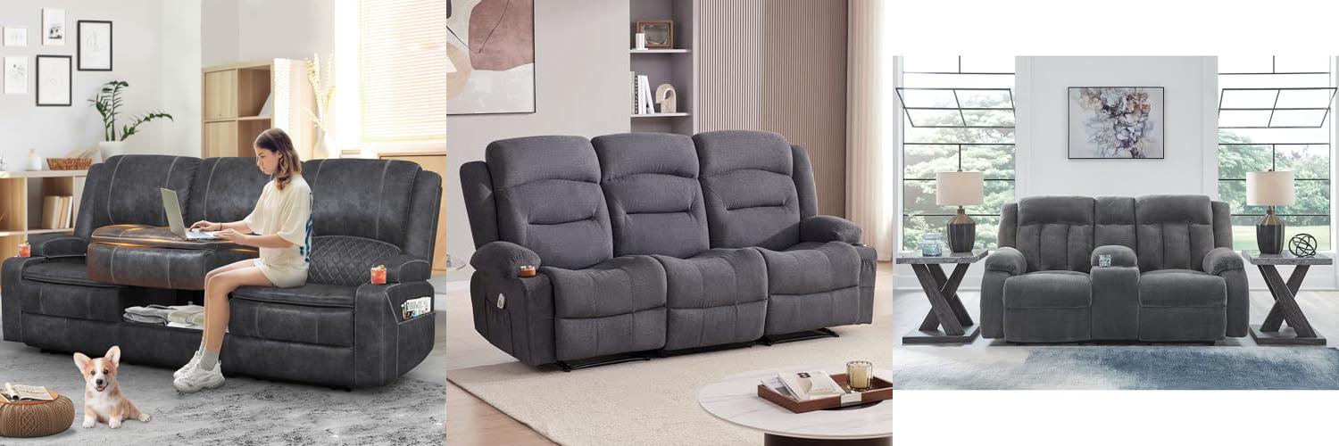 - Built-in Convenience: The middle seat features a handy pull-down table. It includes US outlets, USB ports, and a Type-C port, so you can charge your phone or tablet without leaving your cozy spot. Two cup holders are also built-in to keep your drinks secure. A side storage bag holds your remote or magazines.