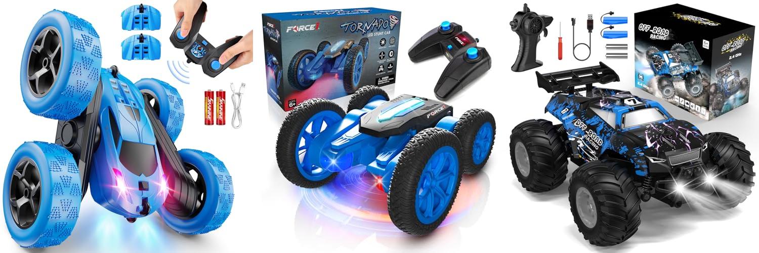 2. Force1 Tornado Blue LED Remote Control Car for Kids- Double Sided Driving Fast RC Cars 360 Flips