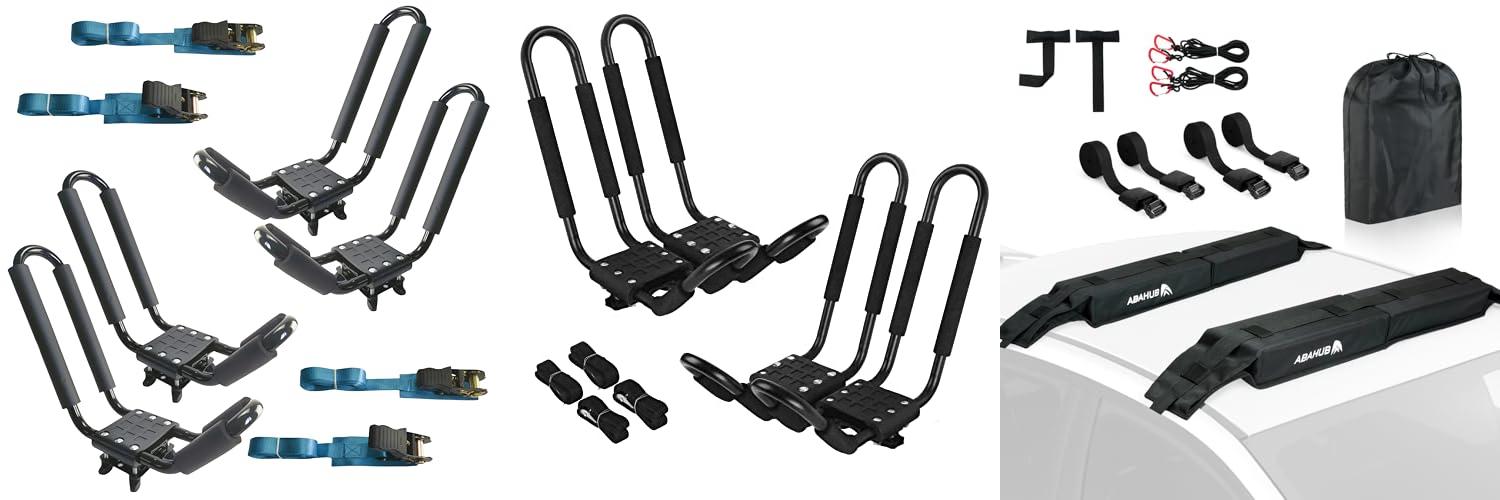 The 2 Pairs Kayak Roof Rack for Car Top Roof Mount Carrier J Cross Bar Canoe Boat is a simple and affordable way to transport your kayak. It’s designed to securely hold your kayak on your car’s roof, making it easy to go on adventures.