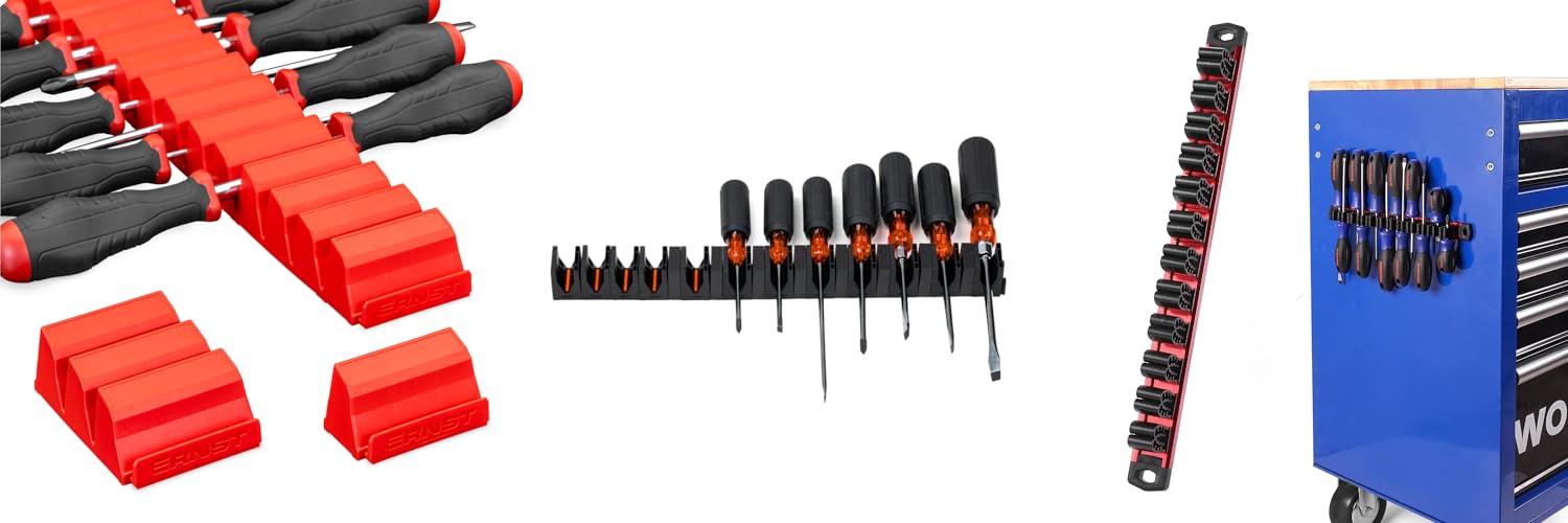 Tired of messy tool drawers? The Ernst Manufacturing Screwdriver Pro is here to help! This red organizer, made right here in the USA, keeps up to 26 screwdrivers neat and tidy. Its smart design makes your tools look great and easy to find.