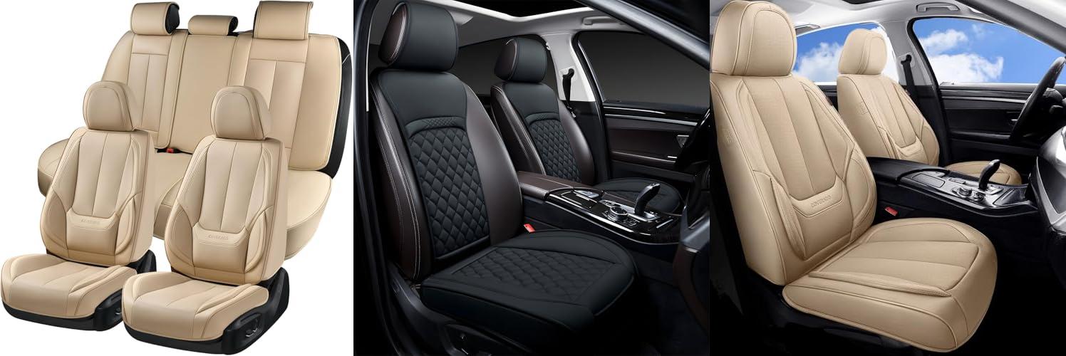 Give your car’s interior a stylish upgrade and top-notch protection with the Coverado Car Seat Covers Full Set. These beige seat covers are made from luxurious Nappa leather and designed with a modern 3D modeling for a perfect fit and enhanced comfort. They’re built to last and keep your seats looking like new.