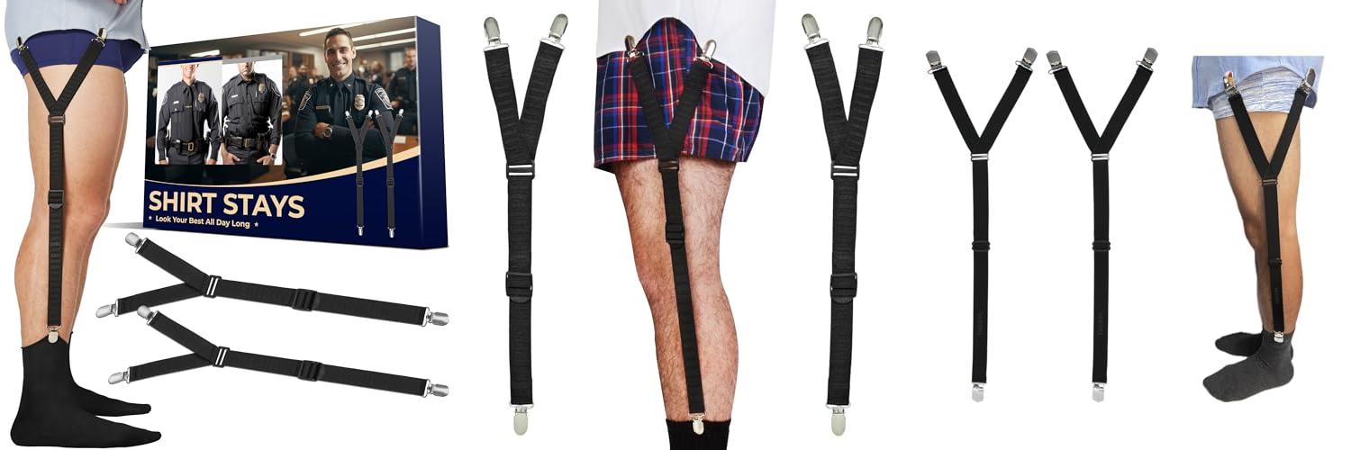 The World’s Best Shirt Stays for Men Police Military Made in the USA (Y-Style Black, Select Series) are designed to keep your shirt tucked in perfectly all day long. Created by a police officer, these shirt stays are built tough for demanding jobs like police and military service, but they work just as well for anyone who wants to look sharp. They are made in the USA with high-quality materials and a smart design.