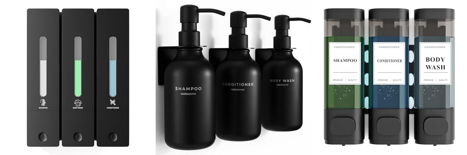 1. Shampoo and Conditioner Dispenser – Wall-Mounted 3-Chamber Shower Soap Dispenser