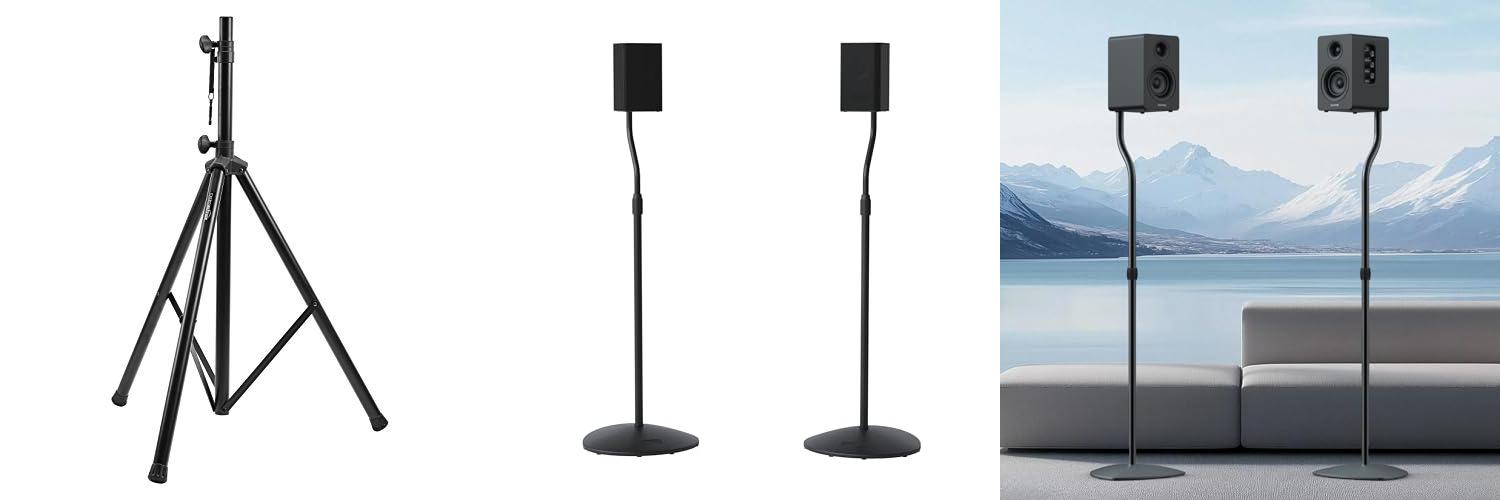 • Bookshelf Speakers: Even small bookshelf speakers sound better on stands. They lift them off surfaces. This improves clarity.