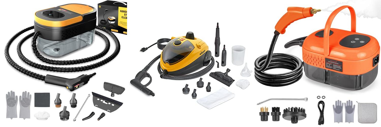 The Steam Cleaner is a versatile cleaning tool for your home, office, and car. It heats up quickly and comes with many accessories. This handheld steam cleaner tackles dirt, grease, and grime on many surfaces. It is great for cleaning grout, tile, floors, and furniture.