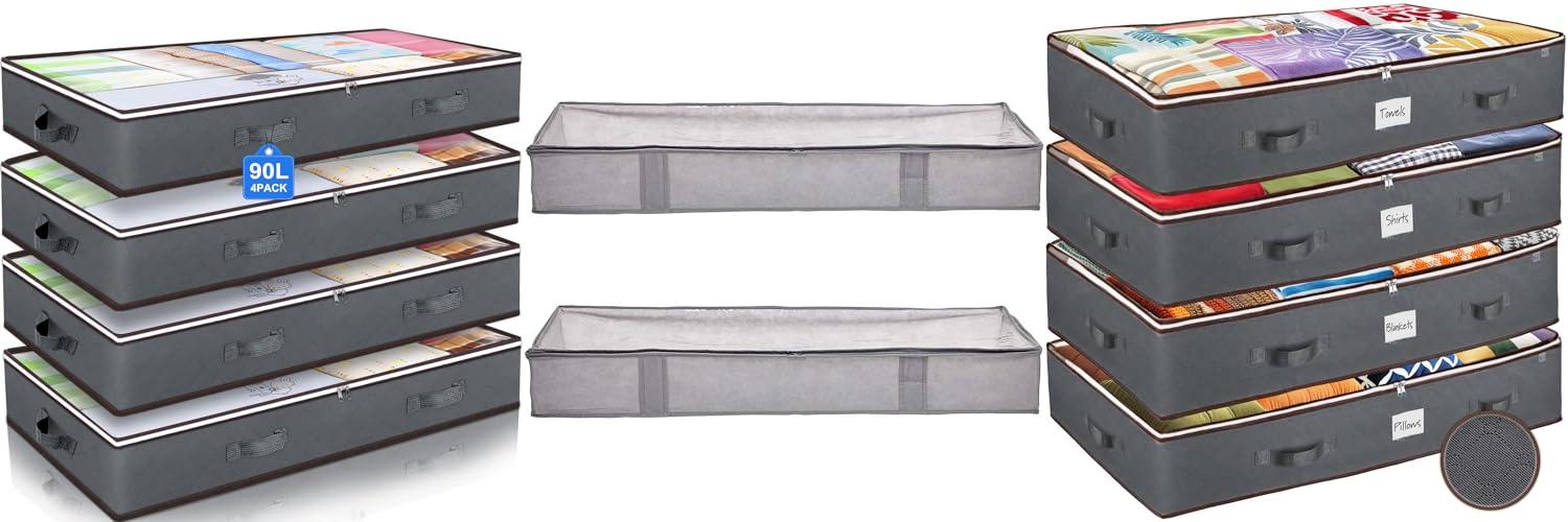 3. Under Bed Storage Bins – Pack Of 4 Under The Bed Storage Containers For Clothes