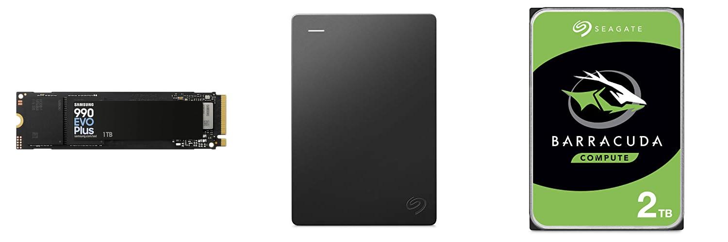 • HDD (Hard Disk Drive): These are older but can hold a lot of data for a good price. They spin like a record player.