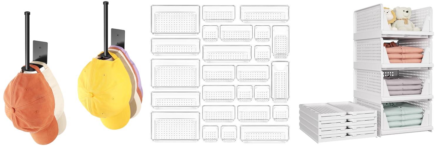 - The organizers come with extra accessories like hanging cups and C-hooks.