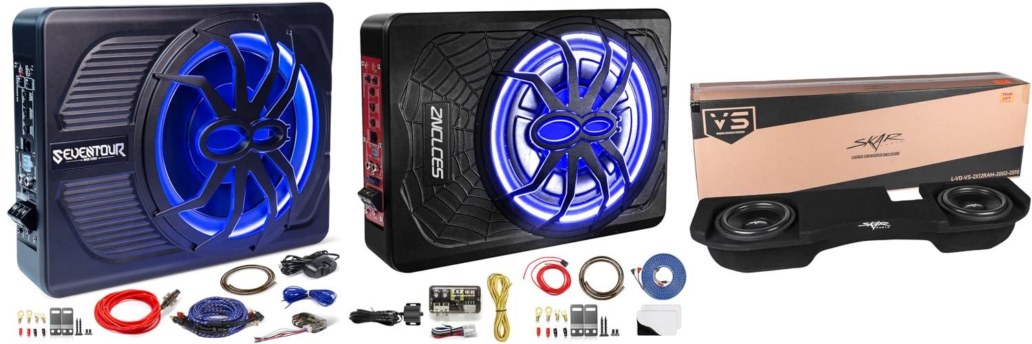 Ready to give your car’s sound system a serious bass boost? This Seventour 10″ Ultra Slim Under Seat Powered Car Subwoofer is designed to fit neatly under your seat, adding powerful bass without taking up much space. It comes with a built-in amplifier, making it an all-in-one solution for upgrading your car or truck audio. Plus, the cool blue LED lights add a stylish touch to your interior.