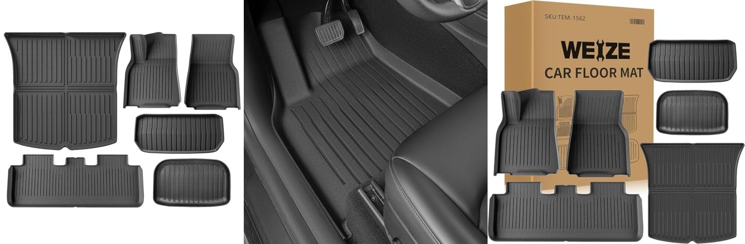 3. Weize Floor Mats & Cargo Liners Fits Tesla Model Y 5-Seat 2021 2022 2023 2024 All Weather TPE Floor Mats and Cargo Trunk Mats Accessories