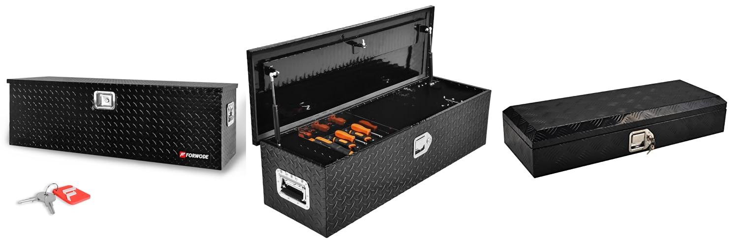 1. FORWODE 48 Inch Truck Bed Tool Box Aluminum for Pickup RV Toolbox Truck Bed Toolboxes Heavy Duty Waterproof Truck Chest with Handle and Lock – Black