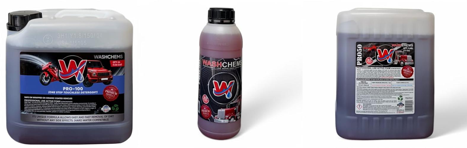 1. Wash Chems Pro 100 Touchless Car Wash Detergent Soap Concentrate No Brushing 4L (Heavy-Duty) Commercial Grade Professional Auto Active Foam Cleaner