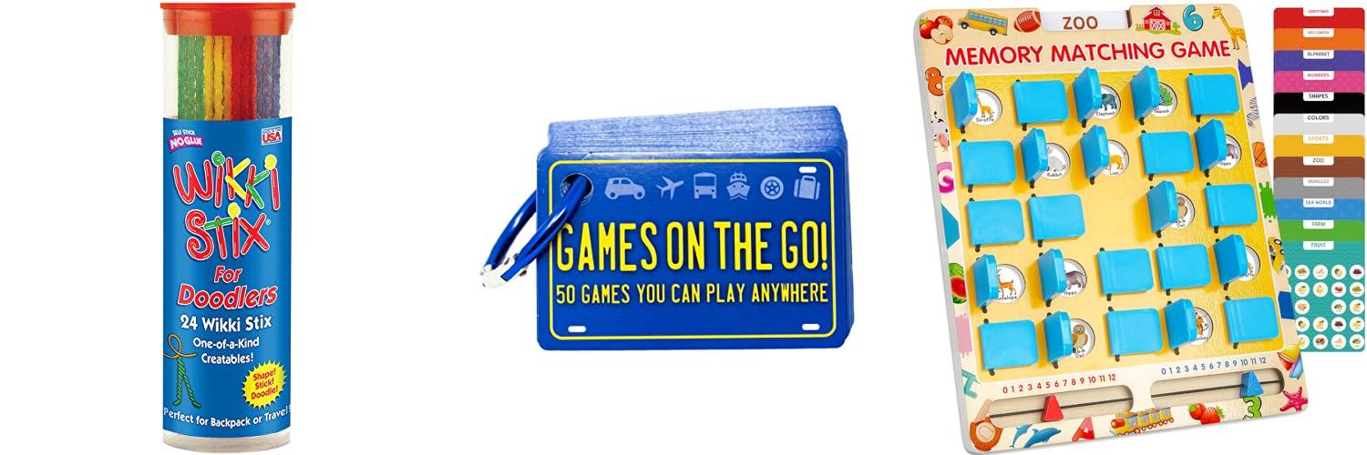 - Educational Games: Card games, audiobooks, and travel-sized board games are great for older kids.