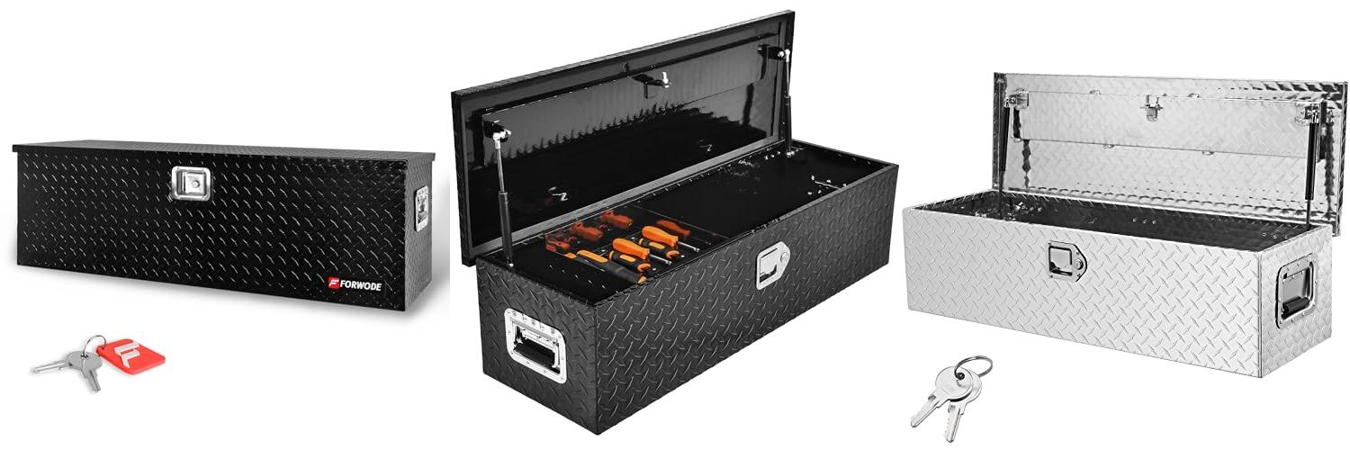 1. FORWODE 48 Inch Truck Bed Tool Box Aluminum for Pickup RV Toolbox Truck Bed Toolboxes Heavy Duty Waterproof Truck Chest with Handle and Lock – Black