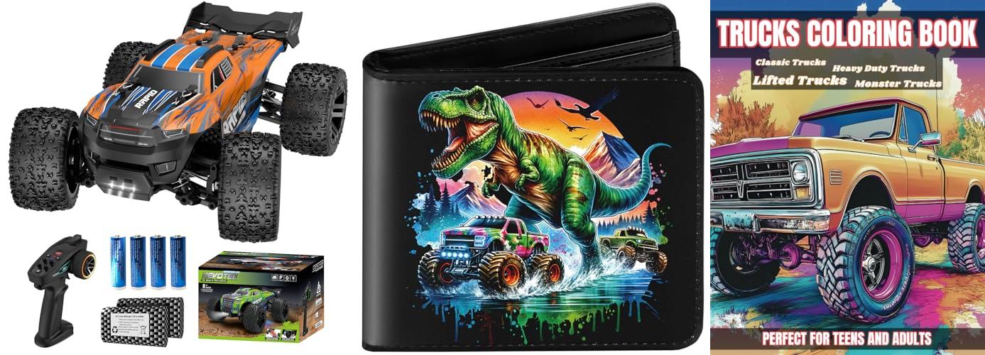 Amutta Kids Wallet for Boys, Cool Teen Boys Wallet for Kids Ages 4-5-6-7-8-9-10-11-12-13-14-15-16, Leather Wallet for Teen Boy, Dinosaur Monster Truck Teenage Teenager Youth Gifts Christmas Birthday