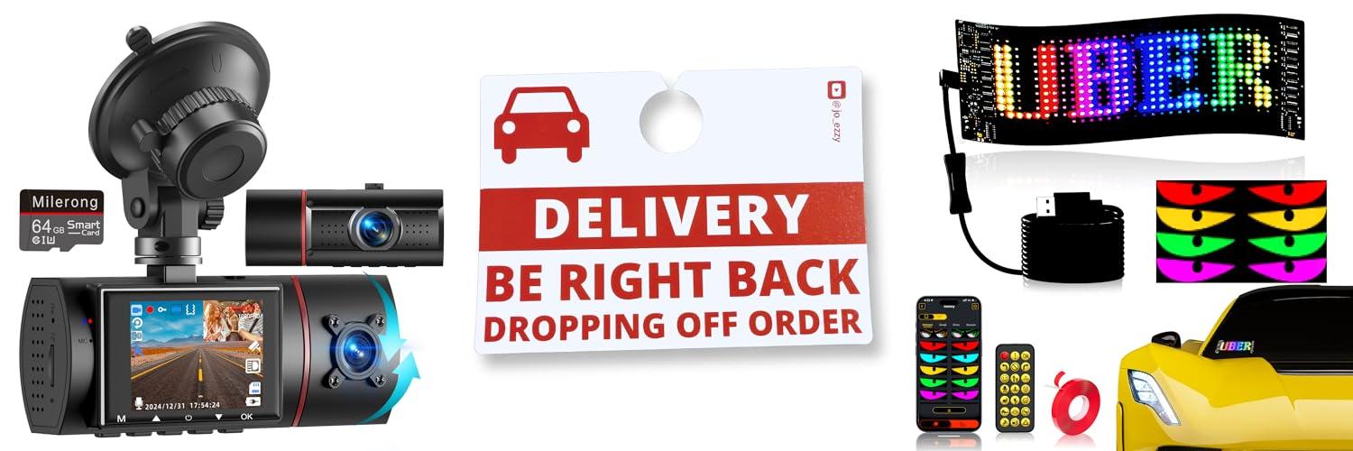 2. Jo_Ezzy Delivery Driver Sign – Reversible Uber Eats & DoorDash Accessories for Car