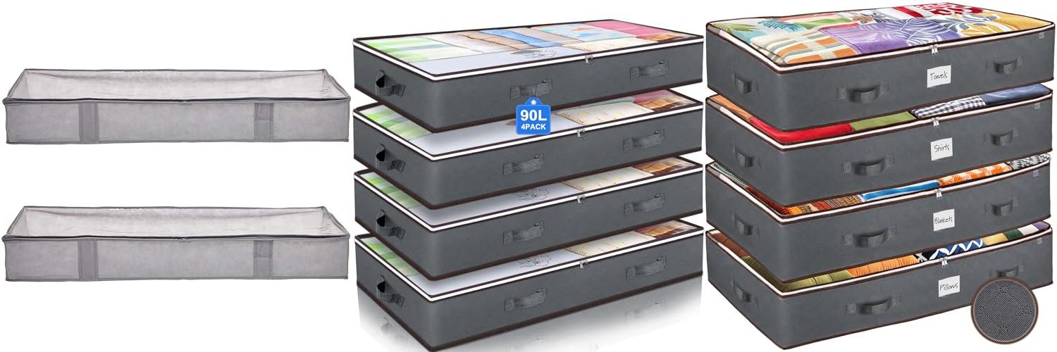 3. Under Bed Storage Bins – Pack Of 4 Under The Bed Storage Containers For Clothes