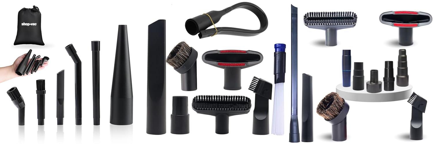 3. Replacement Vacuum Attachments & Brushes plus Universal Adapter Kit Compatible with Shop Vacs 2-1/4” 1-7/8” 1-3/8” 1-1/4 Inch- Flexible Vacuum Crevice Attachment Tool for Shop Vac Accessories