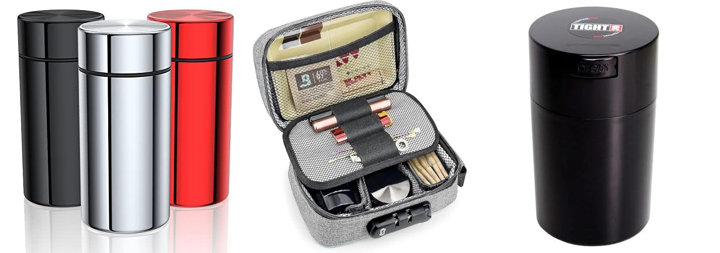 When traveling, discretion is key. Look for smell-proof and durable containers. Small, lockable metal tins are great for travel.
