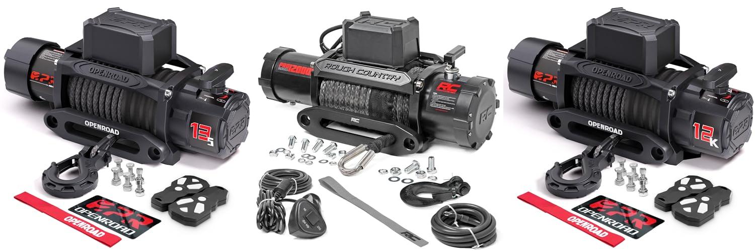 The Rough Country 12,000LB PRO Series Electric Winch with Synthetic Rope is a powerful tool for any off-road enthusiast. It boasts a strong 12,000 lb pulling capacity and a 6HP motor, ready to tackle tough situations. Its synthetic rope is tough and easy to manage, making recoveries simpler and safer. Plus, a handy remote control lets you operate it from a distance.