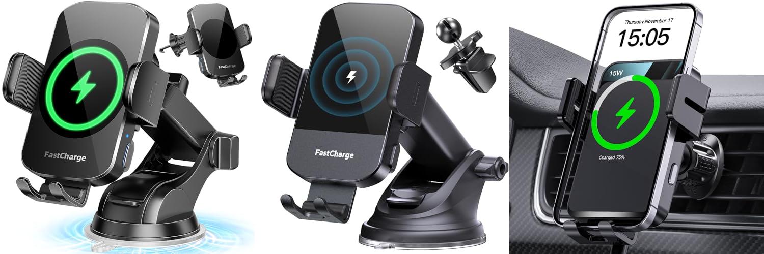 The BothLin Wireless Car Charger is a clever device. It is a fast-charging phone holder for your car. It combines a phone mount with wireless charging. This 3-in-1 accessory can be used on your windshield, dashboard, or air vents. It works with many phones, including iPhones and Samsung Galaxy models. This car accessory makes charging and using your phone easy and safe while driving.