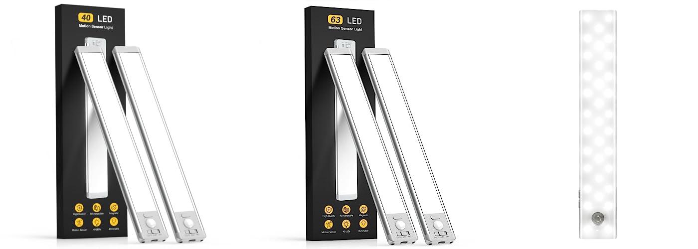 Illuminate your home with this 2-pack of 14.7″ rechargeable motion sensor under cabinet lights. These wireless lights are perfect for kitchens, closets, stairs, and hallways, offering convenience and safety.